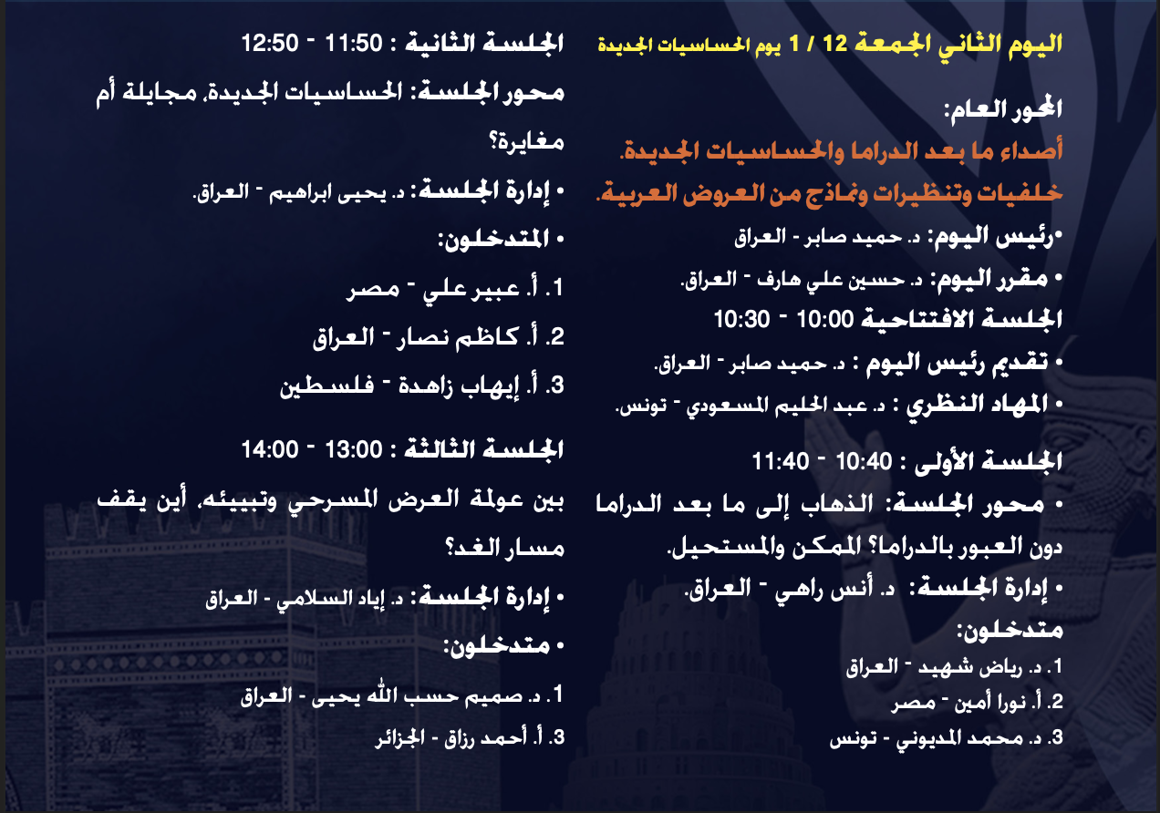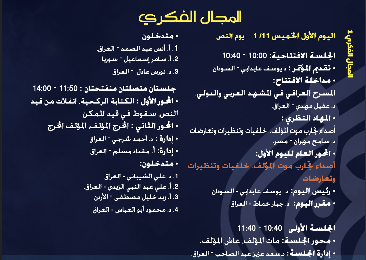 المؤتمر الفكري لمهرجان المسرح العربي الدورة الرابعة عشرة – بغداد – ٢٠٢٤