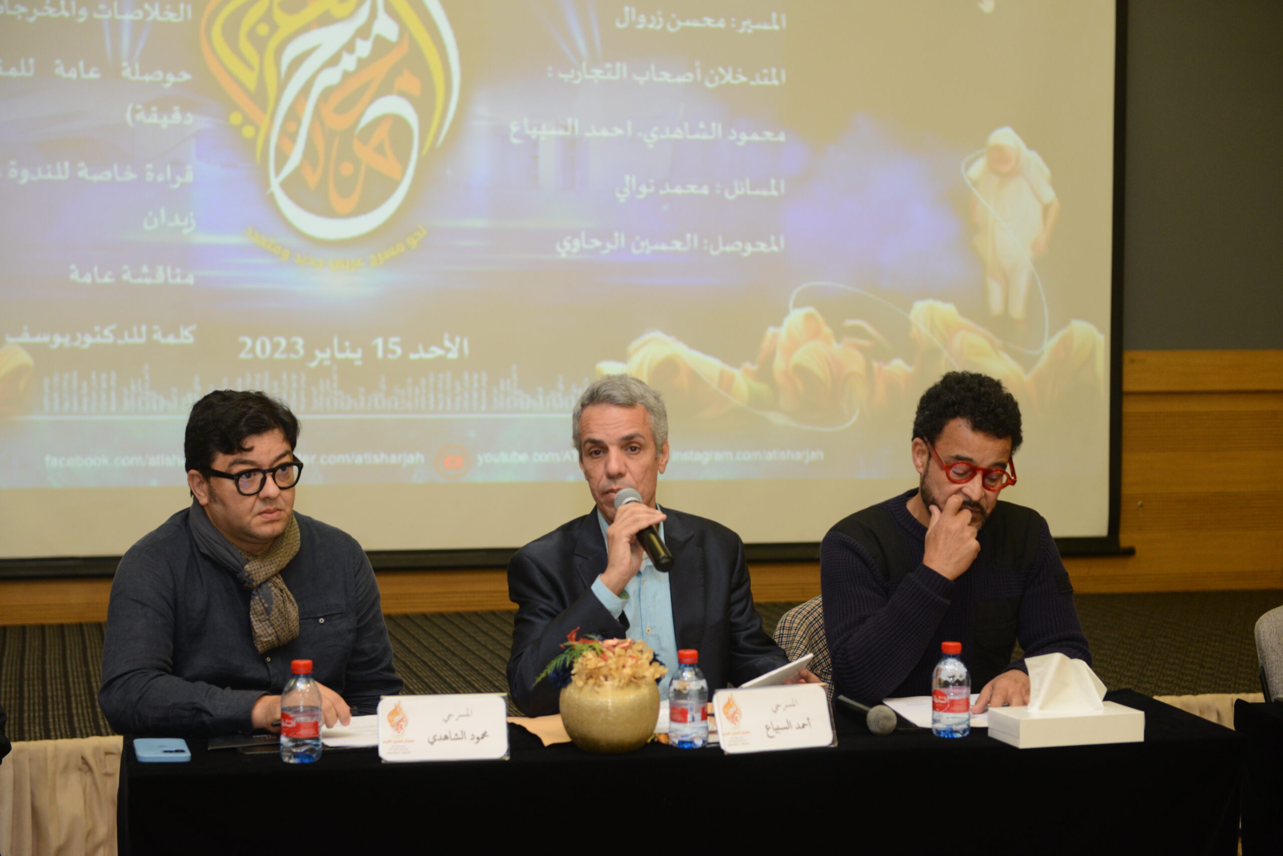 من جانبه، قال الأمين العام للهيئة العربية للمسرح، إسماعيل عبدالله «هي الدورة الثامنة، نجمة ثمانية الشعاع، ثُمانية العطاء ثُمانية النورِ المشع في كبد السماء، أشعّت أول مرة في القاهرة لتكتسب منها مواويل الفلاحين الذين حفروا القناة فغيروا مسالك البحار، وفي الثانية أشرقت من تونس لتقطف المشموم وحكايات القوّالين من دروب قرطاج الحكمة، لتنطلق الثالثة في بيروت، ياقوتِ القلوب وشراعِ المغامرة الأولى لأجدادنا الذين رفعوا القلوع في وجه البحار وروضوها، وتتربع الرابعة في مجالس تايكي حيث ربة عمون مازالت تشعل نيرانها للقوافل العابرة هدى وكرماً في عمّان، وتفتح الدوحة كفها بالخمس مرحبة وتنقش حناء المسرح على أكف المحبين، وتعلن السادسة من شارقة سلطان الثقافة نداءه يا أهل المسرح تعالوا لنجعل المسرح مدرسة للأخلاق والحرية، وتربط الرباط في السابعة مناديل المحبة في معاصم المعتصمين بحبل المسرح الواثقين المستوثقين بعراه المتينة، وتأتي الثامنة كما عودة المراكب بعد طول غياب، أصوات من ركبوا العباب وجابهوا الرياح العاصفات على مدار العام يقتربون من شواطئها».