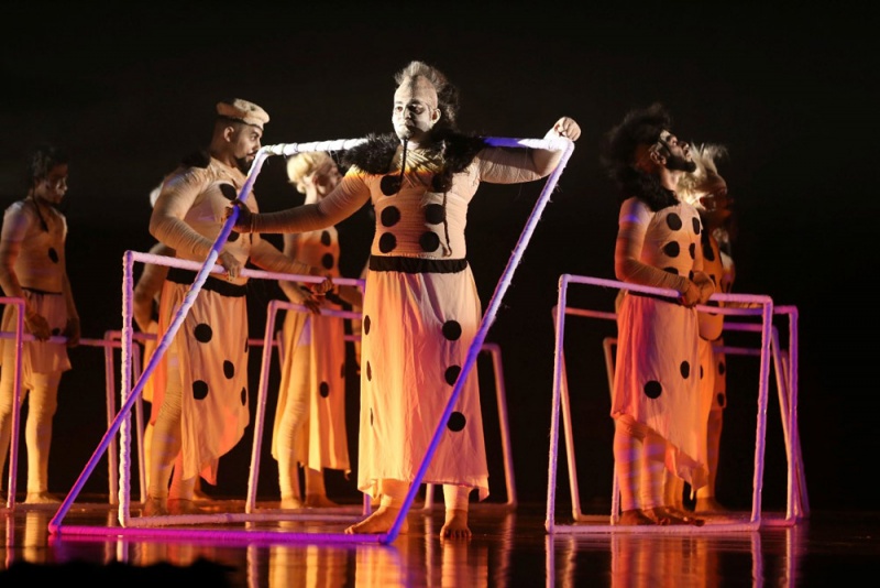هذه السيرة الذاتية المحتدمة بكل إرهاصاتها وإنثيالاتها السياسية والاجتماعية لهذا المناضل والشاعر الكبير، أغرت الكاتب عباس لطيف ليقدمها في نص مسرحي عمل على إخراجه الفنان المبدع عماد محمد، بمعالجة إخراجية امتازت بالتجريبية والحداثوية مع استثمار لغة الجسد عبر مجاميع رقص تعبيري متناغم، وسينوغرافيا موحية ودالة من خلال تفكيك وإعادة صياغات عباس لطيف الدرامية.