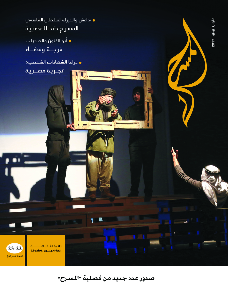 – إن شخوصه هي ملتقى لهم جمعي للإنسان المقدس أينما كان في حضرة الثقافة البصرية التي تشيدها عروضه مثل – مثقف في محنة النظر إلى العالم- عازف متوحد- فيلسوف مستلب- محنة المتسلط راكب الدراجة البخارية- ساحرات. جموع المتسكعين والمجانين والعميان وغيرهم من الشخوص. التي اقتبس منها الكثير ليعيد تشكيلها من عرض لآخر, فيما يسمى باليات التناص (بالاستدعاء القصدي المتغاير).