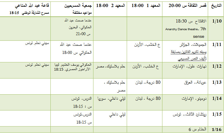 و ستعلن في وقت لاحق لجنة المشاهدة و الترشيح الجزائرية ، فيما يبقى الباب مفتوحاً أمام المسرحيين الذين لم تشكل لجان في بلدانهم للتقديم الحر.