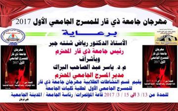 يقيم قسم النشاطات الطلابية بجامعة ذي قار مهرجاناً مسرحياً لطلبة الجامعة على قاعة المؤتمرات في المدينة الجامعية في آذار المقبل .