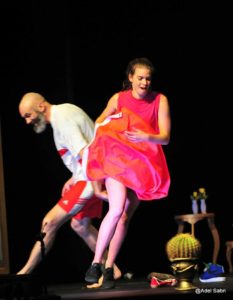 مايؤكد فكرة أن تلك المرأة ” ديدمونة” إستمرار عطيل فى البحث عنها، ومناداتها بإسمها مع ملحوظة تلك الأصول العربية لعطيل ،لكنك هنا تراه يرتدى عباءة عربية وبنطال عسكرى أمريكى وهذا يثير الأسئلة،تقدم تلك المرأة مشهد حركى أمام المرآة لكنها لاتواجه هذه المرآة بل إنها تصنع نوع من جلد الذات عبر إنفعالاتها شديدة العنف مع ذاتها ،ودائما ماتجد وجهها إلى الأرض فى خزى على إثر الإنتهاك لكنها ،ماإن تخلع عنها هذا الثوب الرث ( تتحرر)،هنا تواجه المرآة لكنها لاتنظر إليها ،أيضا يقدم المخرج مشهد تجد فيه عطيل بالبنطال العسكرى فقط ، يتهكم على الرقصات الأمريكية والتى تهتم فى أدائها بالشهوة الجسدية ،وفى الخلفية تقدم الشاشة ،لقطات لزعماء مختلفين سواء كان هؤلاء الزعماء على قدر من النبل أو ماهو عكس ذلك ،حيث يقدم “هتلر وغاندى وصدام حسين وجيفارا معمر القذافى وغيرهم “هنا الفكرة فى الوطن ذاته وليست فى الزعماء . .