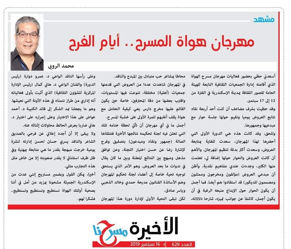 افتتاح الدورة الثالثة من مهرجان المسرح الثنائي «فردة دماغ».. حالات ومواقف تجسد تداعي القيم / عصام أبو القاسم