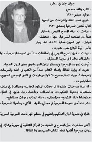بهدف التعريف بالكتاب والحديث عن بعض شجون الحركة المسرحية كان لنا لقاء مع الكاتب والناقد المسرحي جوان جان الذي حدثنا عن كتابه الجديد بالقول :