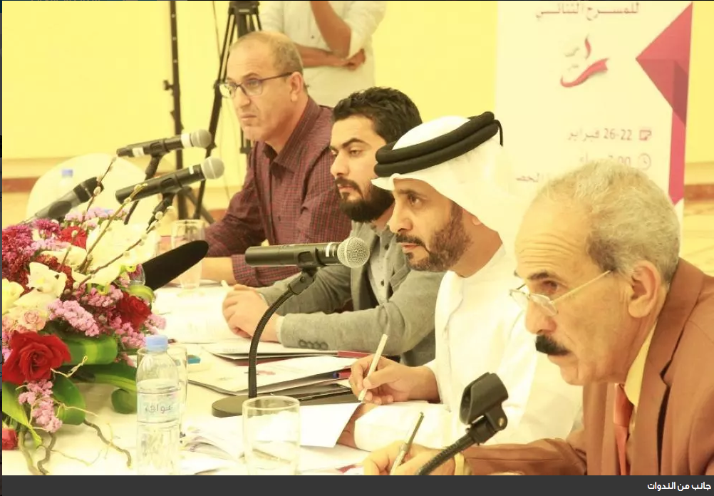وتناولت جلسات اليوم الاول التي ادارها المسرحي عبدالله راشد تحدث في الجلسة الأولى د. باسم الأعسم من العراق، د. رشيد منتصر من المغرب، والمخرج والكاتب التونسي عماد إلمي. وفي الجلسة الثانية د. فراس الريموني من الأردن.