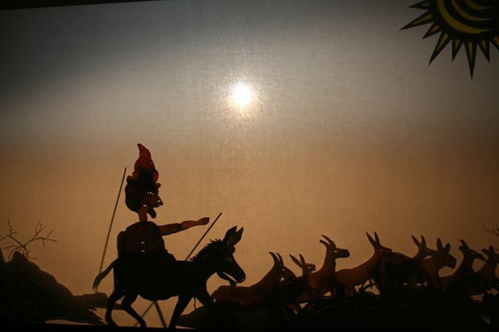 يقوم فن خيال الظل على تحريك دمى تصنع من الجلود المجففة متباينة الألوان، تكون في أطوال متفاوتة تصل إلى نصف متر، وحيث يتم التحريك عن طريق عصيّ من وراء ستار يكون من القماش الأبيض، ولأن الضوء يسلط على العرائس فإن ما يراه المتفرج هو ظل هذه الدمى.