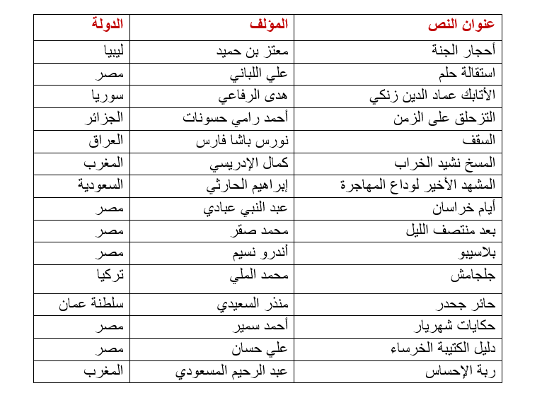 إثنان و ستون نصاً شاركت في التنافس واحد و عشرون منها من مصر.