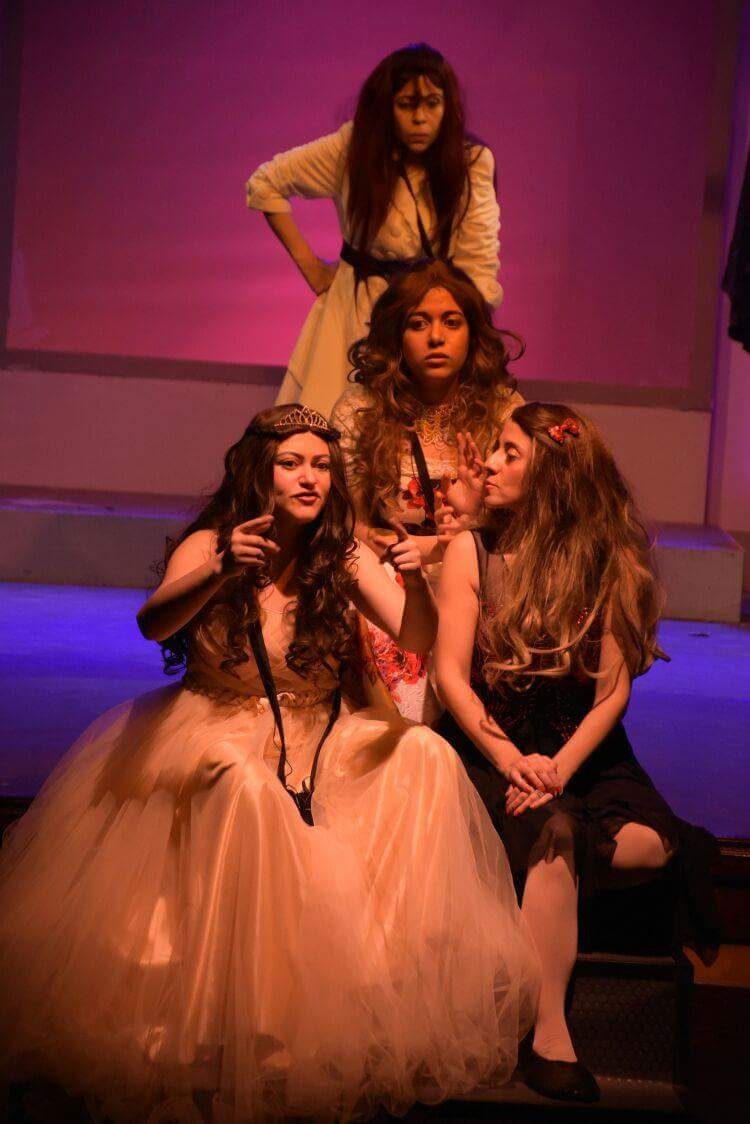 ممثلة تجلس مثل وصيفة في عصر عباسي عند الباب، تقدم الشاي بالنعناع. بخور وأصوات موسيقى من بعيد. لا ضوء سوى التمايل المغناج لضوء الشموع. الشاي حار في اليد والجو دافئ عكس ما كان عليه قبل الدخول، أي في الخارج. الصمت يسبغ إحساسا من الغرائبية على المكان الذي بدت أرضه الصحراوية اللامعة شبيهة بسراب يكاد يحضر ولكنه لا يجرؤ. يبدو دخول الناس وكأنهم يتقاطرون مستسلمين لواحة الصمت وعبق البخور وجلال ذلك الجالس في الصدارة من دونما حراك.