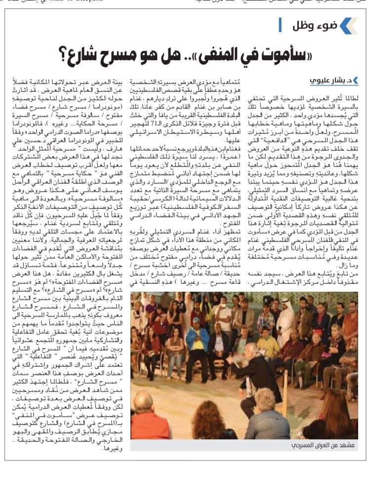 سأموت في المنفى ) .. هل هوَ مسرح شارع ؟؟د. بشار عليوي