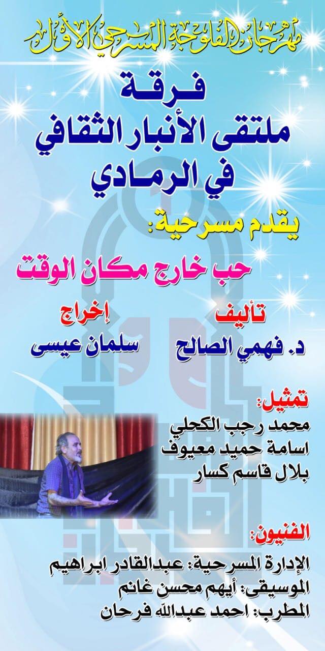 تحت شعار (الفلوجة مدينة المحبة والسلام) تنطلق فعاليات مهرجان الفلوجة المسرحي الأول في مدينة الفلوجة للفترة من 22 الى 25 من ايلول الجاري