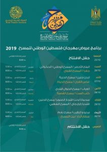 وأشار رائد فارس، رئيس اللجنة العليا للمهرجان إلى أن “فعاليات مهرجان فلسطين الوطني للمسرح تتنوع ما بين عروض مسرحية مميزة، وتمثل الكل الفلسطيني، وتكرس وطنية المسرح، إضافة إلى معرض لملصقات ذات علاقة بالمسرح الفلسطيني في مرحلة ما قبل النكبة، وهو رد على رواية الاحتلال عبر بوابة الثقافة، خاصة أن معركتنا هي معركة رواية وثقافة والمسرح يساهم باتجاه تعزيز الرواية والهوية الفلسطينية، علاوة على انتظام عديد ورشات العمل المتخصصة”.
