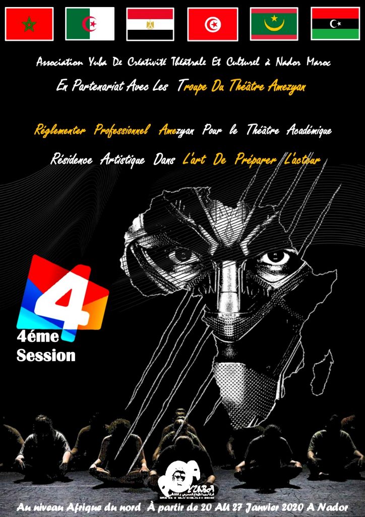بناء على معاينة لجنة فرز ملفات المشاركة في الاقامة الفنية لإعداد الممثل المنظم من طرف جمعية يوبا للإبداع المسرحي و الثقافي بالناظور و بتعاون مع فرقة أمزيان للمسرح الدورة الرابعة من محترف أمزيان للمسرح الأكاديمي لإعداد الممثل على الصعيد شمال افريقيا , من 20 حتى 27 يناير 2020 .