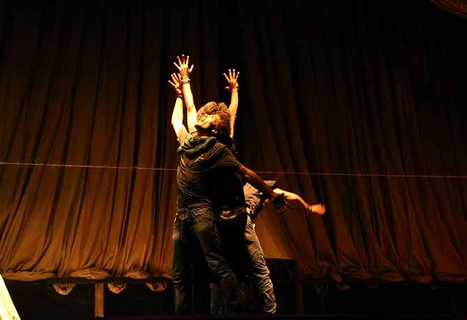 أما مشاهد الدبكة والطبلة على سبيل المثال فبدت باهتة إذا ما قورنت بالاشتغال الدقيق للمخرج على أداء ممثليه. وهذا الاشتغال الدقيق الذي يدل عن حرفة ومهارة يتشاركها كل من المخرج والممثلين -بالرغم من قدرته على إدهاشنا كمشاهدين- بقي على النمط ذاته في الأداء طوال العرض، فتحولت تلك الحرفة لغياب عنصر المفاجأة المضاميني والأدائي فيها إلى تقنية فائقة الإتقان ولكنها مونوتونية.