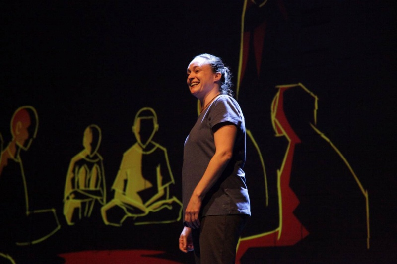 شخصياً لا مانع لدي أن أعيد مشاهدة العرض أكثر من مرة بسبب الأداء البارع والمتقن والفريد الذي قدمته هذه الفنانة المفاجئة فعلاً، المختلفة تماماً عن الممثلة التي نعرفها على الشاشة: تنويع في الأداء الصوتي والحركي منسجم وطبيعة الحوار والميزانسين العام للعرض، ليونة عالية ورشاقة جسدية وصوتية ونفسية أيضاً في الانتقال من حال إلى أخرى بسلاسة بليغة رغم مشقة الفعل، الانفعالات الحسية الباذخة التي ترجمتها بكل ما فيها حرفياً وبالشكل الأمثل، وإن كان أحد أهم أعمال المخرج هو الإشراف على الأداء، فقد حقق كل من كفارنة وصفاء رقماني مُعطى مسرحياً رفيعاً عن جوهر فن التمثيل في “بيت الشغف”، الأمر الذي لم يكن على المستوى نفسه مع المخضرمة أمانة والي، ولكن الموضوع ليس من باب المقارنة، فما قدمته “صفاء رقماني” من أداء على خشبة المسرح ولمدة 50 دقيقة من الأشغال المسرحية الشاقة، من الصعب أن يتكرر، وشخصياً أعتقد، إن حظي “بيت الشغف” بفرص لعروض عالمية، أن تحقق رقماني شهرة كبيرة كممثلة مسرح، وأن تحجز لها مقعداً متقدماً بين أهم ممثلات المسرح في العالم.