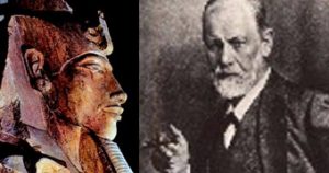 حاول إيمانويل فليكوفسكي في كتابه ” أوديب وأخناتون” أن يتلمس جذور أسطورة أوديب في حياة فرعون مصر أخناتون. ويرى أن قصة أوديب مع أم الهول في مدينة طيبة اليونانية مقتبسة من قصة أخناتون. وأن مدينة طيبة هي في الأصل طيبة المصرية، وأن أم الهول هي أبو الهول الموجود نصبه في الجيزة.