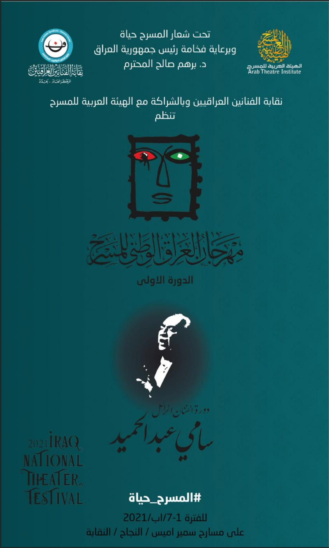اعلام المهرجان تحت شعار (المسرح حياة) وبرعاية كريمة من لدن رئيس جمهورية العراق الدكتور برهم صالح، وبالشراكة مع الهيئة العربية للمسرح، تنظم نقابة الفنانين العراقيين الدورة الأولى من مهرجان العراق الوطني للمسرح (دورة سامي عبد الحميد)، للمدة من الاول ولغاية السابع من آب / أغسطس 2021 في عرس جمالي إبداعي بهيج يزهو به مسرحيو العراق ويتألقون، وهم يعيشون هذه اللحظات المسرحية الجميلة التي انتظروها طويلاً، ليوقفوا زخم التحديات التي أحاطت بهذا المهرجان الذي سيكون واحة لإبداعات جديدة ومتنوعة بمشاركة حوالي أربعمائة شخصية مسرحية وثقافية من مختلف محافظات البلاد بما فيها العاصمة بغداد .