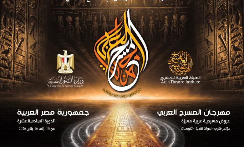 بمناسبة اقتراب موعد انطلاقة الحدث المسرحي العربي الأبرز والذي يدشن بالمسرح بداية كل عام، تعلن الهيئة العربية للمسرح بيانها حول فعاليات الدورة 16 من مهرجان المسرح العربي، الذي تنظمه بالتعاون مع وزارة الثقافة المصرية، من 10 إلى 16 يناير 2026 في مدينة القاهرة، حيث تحظى هذه الدورة برعاية من فخامة رئيس الجمهورية عبد الفتاح السيسي، وبمشاركة فاعلة من كافة أقسام وزارة الثقافة المصرية وكوادرها البشرية الإدارية والفنية.