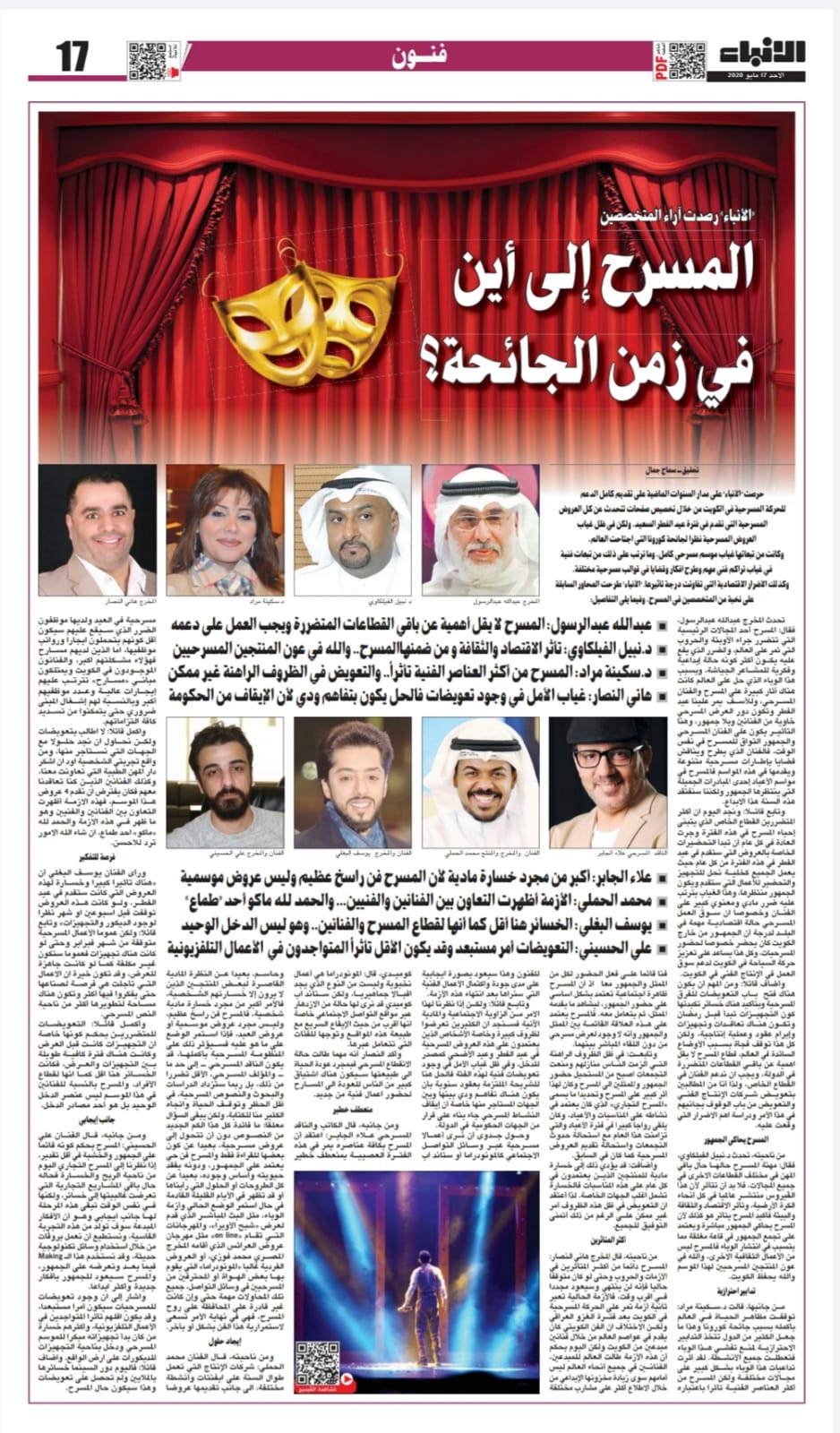 كما يقول الفليسوف اليونانى بروتاجوراس – وللأن المجتمع العربى يتارحج فى قبول هذه الآراء لذلك ظل الفاعل (الديني ) العقيدي الغيبي الجبري يقوده من عنقه . وبذلك ظل التعبير الأدبى والفنى مقيد المصير بإرادة تتشابك فيها الفواعل الماضوية غالبية الوقت وتظل الـ(نحن)الجمعية رهن إرادة (نظرية الكل فى واحد) وسواء خاض المسرح عندنا فى قضايا العلم أوالفلسفة أو السياسة فإن الفاعل الماضوى هو الذى يقود مسيرة طرحه أو مدلول خطابه ولا مخرج لنا من ذلك الأسر سوى بتكثيف العروض الحديثة ذات الدلالات المتعددة ومابعد الحداثية التى تفكك مركزية الخطاب وتنقض أنساقه المعرفية والبنائية في سبيل تأسيس منهجي لتربية العقل النقدى الذى لم يوجد بعد بفعالية فى ثقافتنا وحتى لا تختلط المفاهيم والأدوار عند المسرحى العربى وهو يخوض فى أحداث ويرسم شخصيات ومواقف فكرية وقيم منها ما يدخل فى نطاق الفكر الاجتماعى والاقتصادى والعلوم الإنسانية ومنها ما يدخل فى نطاق التاريخ (أعلامه ووقائعه ) فيجسد شخصيات العلماء وطرائقهم وتضالهم لتمهيد تضاريس الحياة الإنسانية ومناخها حتى تمكن البشرية من حياة أفضل وأكثر أمنا وعدلاً وإحاطة بما يحيط بها وبما ينتظرها ؛ وبما يجدد أساليبها الحياتية ومنها مايشكل ثقافات مركزية :عالمية ومحلية ؛ تراثية تشع فى الحاضر – ومعاصرة وذلك بما لا يخرج عن شروط مرتبطة بالشكل الذى ينسج فيه مضمونه الفكرى سواء كانت سابقة على إبداع أم وليدة الإبداع نفسه – من خلقه – عندئذ يصبح تحصيله لمضامين هذه الحقول الإنسانية والعلمية شيئا ضروريا ، لينصهر ذلك عنده ويصبح إدراكه وفهمه لمهام كل حقل من تلك الحقول هو الضمانة لعمق إبداعه المسرحى ولتأثيره فى حركة التنوير أو الإنارة التى بدونها لا وجود لرؤية مستقبلية .