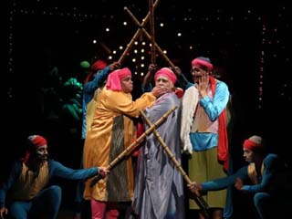 العالم المتخيل في عرض “توبيخ”، أداء: حمد عمر أيوب، ضرغام قاسم، زكريا طقيق، يحيى بودوشة، أسماء مرزاوي ومريم قرعيز، لم يكن حسب قراءة الناقد مروان ياسين الدليمي، إلا تعرية للعالم الواقعي، في سياق فني قائم على التشظي -على غرار تشظي الوضع في العراق- كما انعكس في حوارات تفتقر إلى التجانس وغير مفهومة تنطلق من أقنعة حيوانية، إذ ليس ثمة حكاية واحدة يتمركز حولها المتن الدرامي، فكان المتلقون أمام عملية مستمرة من الهدم والبناء، داخل فضاء يفضي به، من ثم، إلى استجابات شعورية تبعث على الإحساس الدائم بالتوتر، خاصة أن ما يتحرك في هذا الفضاء من صور متلاحقة تربطها علاقات واهية من حيث الشكل مع العالم الواقعي، لكنها في الوقت ذاته صادمة وساخرة واستفزازية تشكّل إشارات رمزية إلى حقيقة العلاقة المشوهة التي تتعامل بها السلطة مع مواطنيها، ومحاولاتها المستمرة لاستنساخهم ليكونوا على صورتها التي جاءت على هيئة حمار.