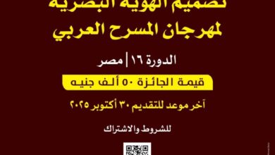 *مهرجان المسرح العربي يعلن عن مسابقة لتصميم الهوية البصرية لدورته الجديدةأعلنت إدارة مهرجان المسرح العربي، الذي تنظمه الهيئة العربية للمسرح…